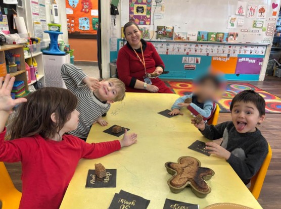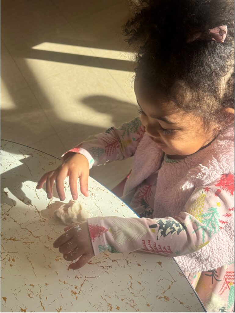 • Students practiced retelling events, worked on sequencing, and developed body awareness by reconstructing gingerbread figures and shaping dough.